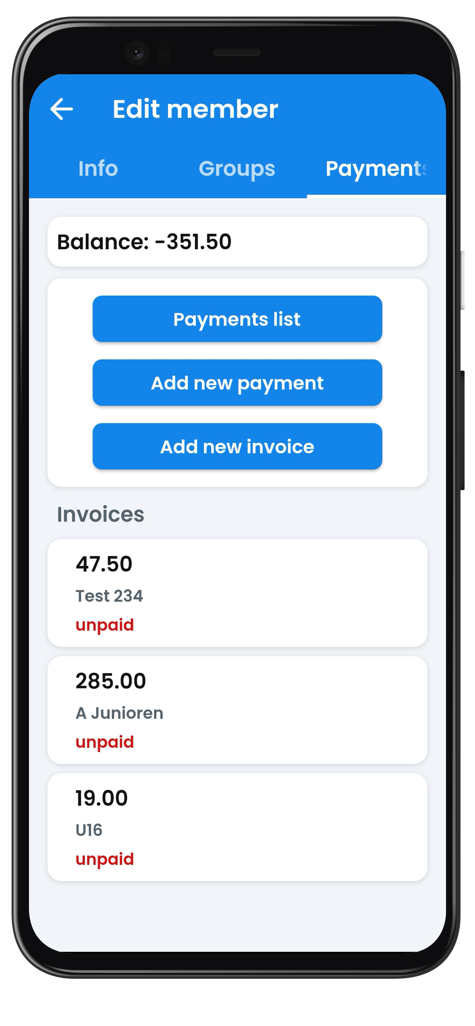 SmartClub will help you to keep track of every payment made in the club. Combined with member accounts and notifications it makes the whole process reliable.